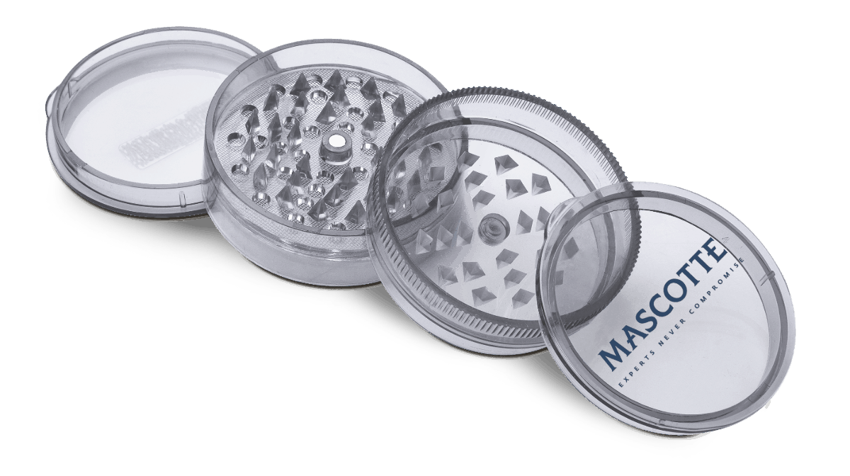 Mascotte Plastic Grinder – a high-quality, 4-layer grinder featuring sharp shark teeth that effortlessly shred your herbs to perfection. Its transparent color allows you to see the grinding process in action, adding a touch of excitement to your preparation routine.